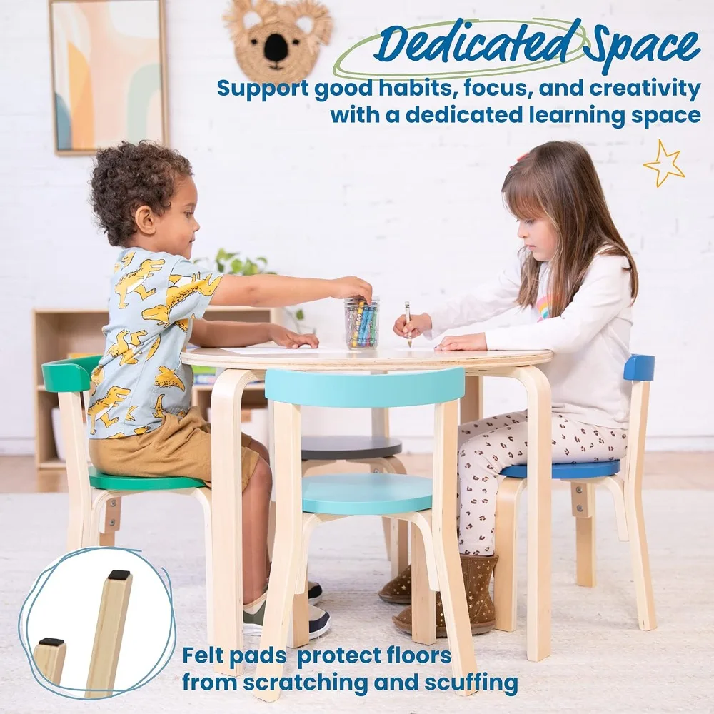 Bring playtime, creativity, and learning to life with the Kids Round Table with 4 Curved Back Chairs—a beautifully designed set made just for little ones. With its smooth round table and ergonomically curved chairs, this set creates a safe, cozy, and inviting space where kids can read, draw, build, snack, or share stories with friends.